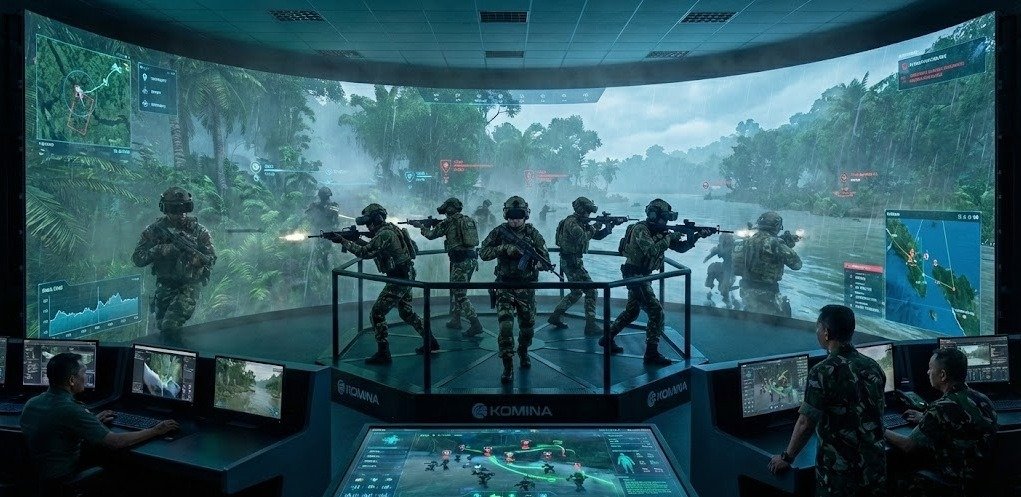 Inside the KOMINA combat simulation training environment, a squad can execute a complex “Urban Warfare” scenario 50 times in a single day with zero marginal cost. They can fail, reset, and try again in seconds.